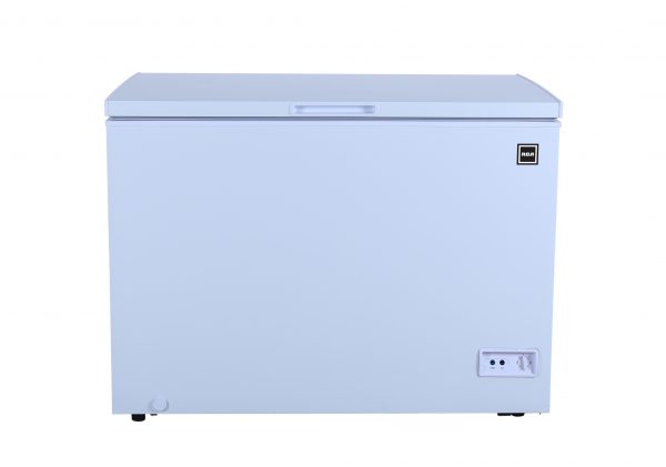 Manual defrost chest freezer in white.